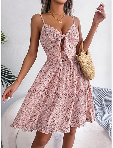 Per donna Mini Abito Abito a trapezio Abito Sottoveste Casual All'aperto Uscire Vestibilità regolare Floreale Senza Maniche Spalline sottili Blu Bianco Rosa Estate