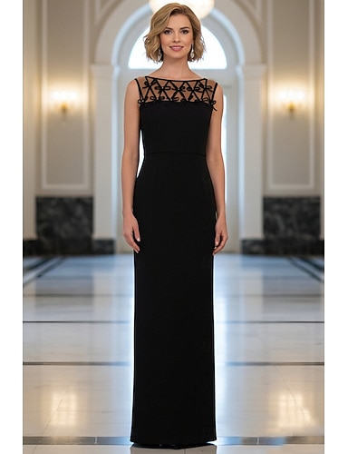 Tubino Colonna Lunghezza al pavimento Perline ricamate Abito Formale Abito da madre della sposa Abito da Sera Da principessa Abito formale Elegante Abito Nero Setoso Senza Maniche Monospalla