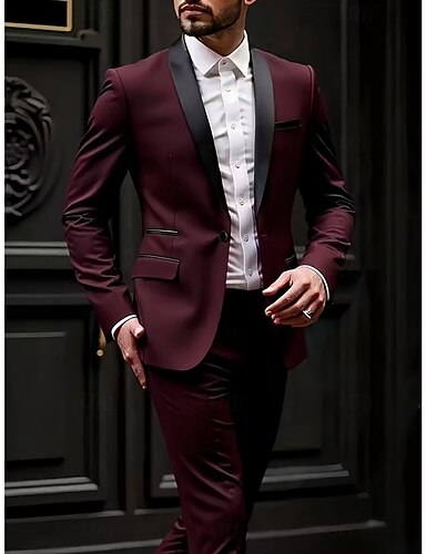 Uomo Abiti da festa Casuale Affari Nero Borgogna Primavera, Autunno, Inverno, Estate Tuta Bavero sciallato Quotidiano Formale Tinta unita Vestibilità standard 2 pezzi Monopetto a un bottone