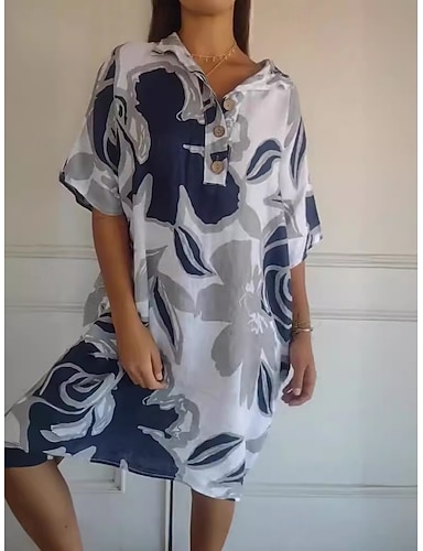 Per donna Abito al ginocchio Finto cotone e lino Abito a Tubino Vestito Casual Moda Moderno Quotidiano Vacanza Uscire Vestibilità comoda Floreale Mezza Manica Colletto a Camicia Blu Bianco Giallo Rosa