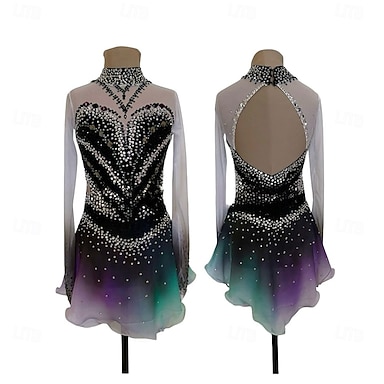 Abito da pattinaggio artistico Per donna Ragazze Pattinaggio sul ghiaccio Vestito Nero tintura sfumata Orlo asimmetrico Spandex Alta elasticità Allenamento Professionale Competizione Vestiti da