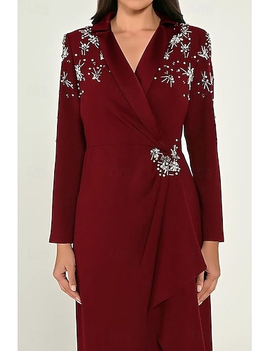 Per donna Da donna Abito da smoking Tubino Colonna Formale Ospite di nozze Poliestere Raso Velluto Elegante Spacco Alto Manica Lunga Collo a Lancia Nascosto