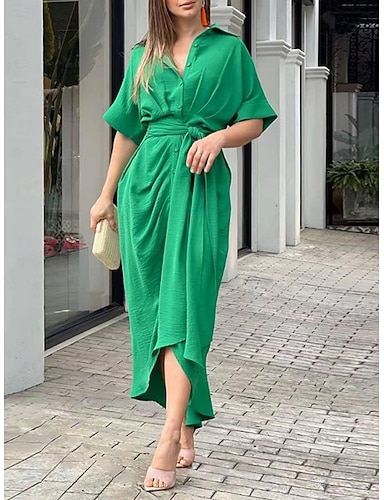 Per donna Abito Midi Abito Camicia Vestito Casual Abito da lavoro Elegante Moda Moderno All'aperto Vacanza Uscire Vestibilità regolare Semplice Manica Corta Colletto a Camicia Nero Bianco Giallo Rosa