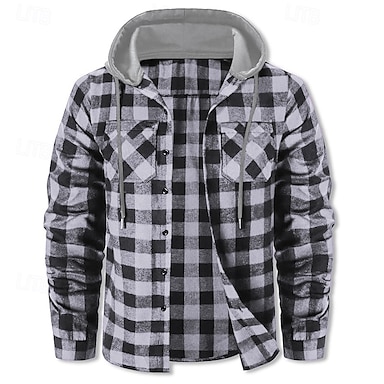 Per uomo Camicia Camicia di flanella Sopracamicia Plaid All'aperto Streetwear Giallo Rosso Blu Viola Manica Lunga Inverno Primavera & Autunno Abbigliamento