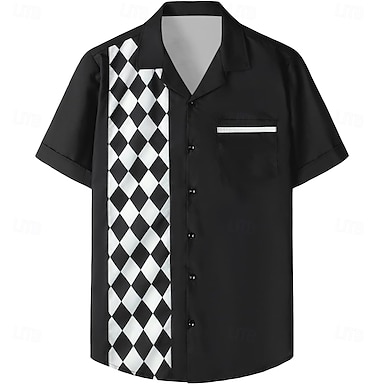 Per uomo Quadri Camicia da Bowling Camicia con Bottoni Manica Corta Casual Athleisure Estate Primavera Colletto cubano Cardigan con Bottoni Tasca Nero