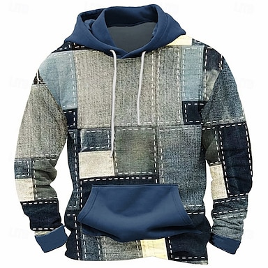 Per uomo Plaid Felpe con cappuccio Felpa Moda Cool Quotidiano Manica Lunga Girocollo Feste Ferie Abbigliamento casual alla moda Blu Marrone Coulisse Autunno Inverno progettista S M L XL XXL XXXL