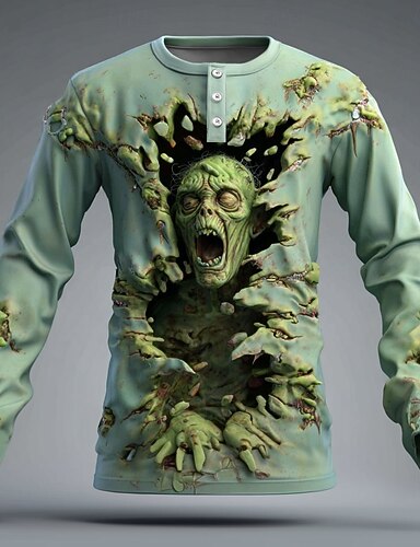 Per uomo Zombi Maglia Henley Manica Lunga Moda Carino Quotidiano Casuale Ferie Uscire Autunno Primavera & Autunno Verde Viola Blu Cachi Henley Maglietta Henley