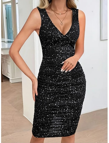 Per donna Mini Abito Abito nero Abito con Paillettes Vestito da Festa Moda Moderno Ufficio Feste Uscire Vestibilità regolare Semplice Senza Maniche Scollo a V Nero Estate Primavera Autunno