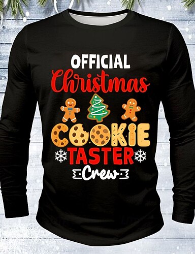 Natale Per uomo Divertente Omino di marzapane Maglietta Manica Lunga maglietta Stampa 3D Girocollo Camicia Moda Essenziale 3D Streetwear Casuale Quotidiano Nero Rosso Blu Estate Primavera