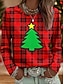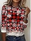 T-Shirt donna di Natale Fiocco di neve Moda grafica A quadri Vintage Stile Maniche lunghe Collo rotondo Regular Tops Stampa del weekend Bianca Rossa Verde Estate Primavera Autunno Inverno