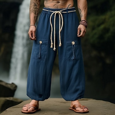 Per uomo Pantaloni di Lino Pantaloni Pantaloni Estivi Pantaloni Larghi Coulisse Elastico in vita Gamba larga Semplice Comodità Traspirante Lunghezza intera All'aperto Yoga Casuale Vacanza Moda Blu