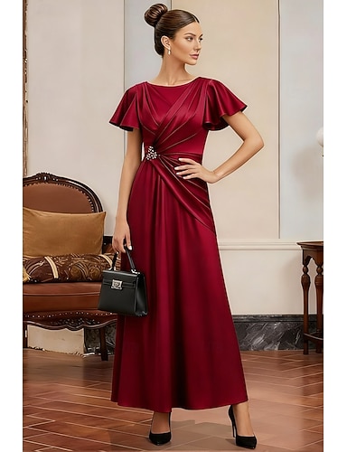 Linea ad A Lunghezza alla caviglia Vestito da Festa Abito da Cocktail Abito da invitata a nozze Abito da cerimonia per signora Manica Corta Girocollo Elegante Minimalista Formale Ospite di nozze Raso