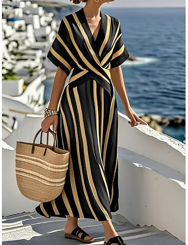 Linea ad A Lunghezza alla caviglia Lunghezza Tè Abito da invitata a nozze Abiti per invitati a matrimoni Elegante Quotidiano Manica Corta Collo Alto Festa in giardino Matrimonio Shiena scoperta con