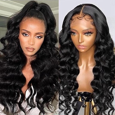 parrucca frontale in pizzo con capelli umani di colore naturale 13*6 parrucca in pizzo con onde del corpo densità 150%