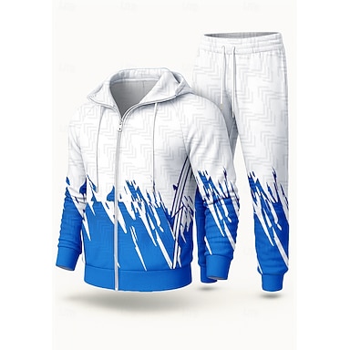 Per uomo Felpa con cappuccio Tuta da Ginnastica Tuta da 2 pezzi Coulisse Con zip Geometrico Completo Abbigliamento Autunno Inverno Blu Lavoro All'aperto Viaggio Leggero Di tendenza Manica Lunga Sport