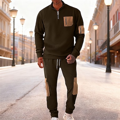Per uomo Maglia Tuta da Ginnastica Set di abiti Collo alla coreana All'aperto Quotidiano Sportivo Coulisse Tasca Mezza cerniera Blocco di colori Nero Marrone Verde militare Pile Poliestere