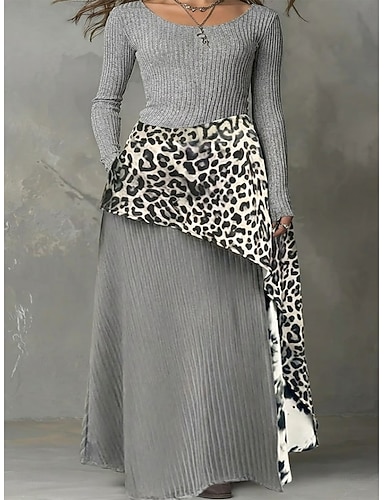 Per donna Abito lungo maxi Abito Vintage Vestito Casual Abito Boho Abito Stampato Elegante Moda Moderno Quotidiano All'aperto Vacanza Vestibilità regolare Semplice Manica Lunga Girocollo Grigio