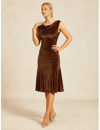 Linea ad A Lunghezza al ginocchio Abito da Ballo Vestito da Festa Abito da Cocktail Abito da cerimonia per signora Manica 3/4 Girocollo Elegante Vintage Festa Cocktail party Serata Formale