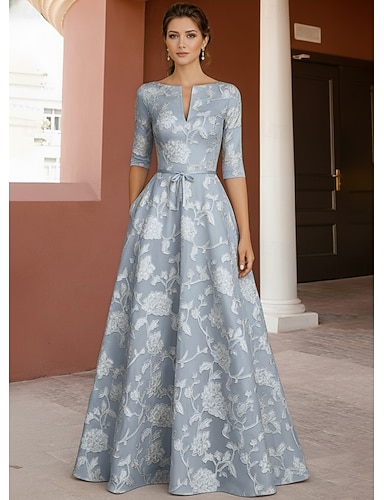 Linea ad A Lunghezza al pavimento Abito da invitata a nozze Abito da cerimonia per signora Mezza Manica Scollo Tondo Elegante Semplice Casual Formale Chiffon Pizzo Scialli con Arricciato Ricamo