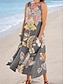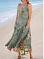 Per donna Abito Midi Vestito Estivo Abito a trapezio Vacanza Casual Boho Ferie Vestibilità comoda Floreale Grafico Senza Maniche Collo a U Verde salvia Verde Grigio Estate Primavera