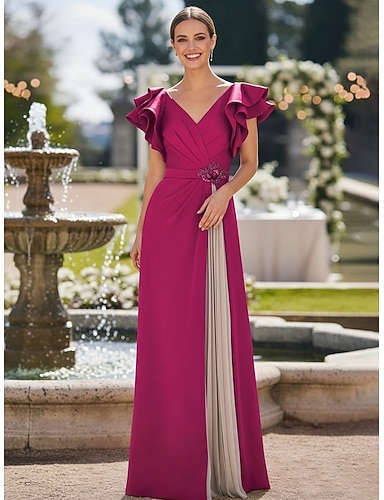 Tubino Colonna Lunghezza al pavimento Abito in Raso Abito da invitata a nozze Abito Formale Abito da cerimonia per signora Manica Corta Scollo a V Elegante Vintage Formale Ospite di nozze Raso con