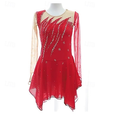 Abito da pattinaggio artistico Per donna Ragazze Pattinaggio sul ghiaccio Vestito Rosso Patchwork Foro per il pollice Rete Spandex Elasticizzato Allenamento Professionale Competizione Vestiti da