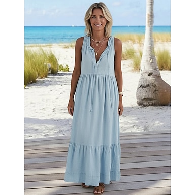 Per donna Abito maxi 100% cotone Vestito Estivo Essenziale Casual Quotidiano Vacanza Vestibilità regolare Semplice Senza Maniche Scollo a V Rosa Azzurro Estate