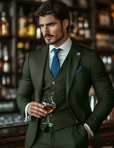 Uomo Abiti da festa Matrimonio in Spiaggia Matrimonio primaverile Verde militare Primavera & Estate Tuta Bavero classico Casual Formale Tinta unita Vestibilità aderente 3 pezzi Monopetto a un bottone