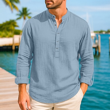 Per uomo Camicia di lino Camicia popover Camicia casual Camicia da Spiaggia Camicia con colletto alla coreana Semplice Casuale Abbigliamento casual alla moda Nero Bianco Rosa Azzurro cielo Manica