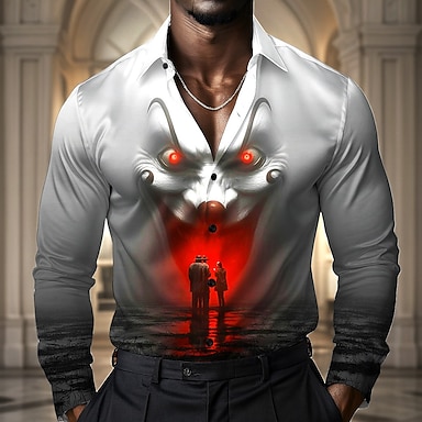 Per uomo Pagliaccio inquietante Burlone Camicia Camicia in raso Camicia elegante Manica Lunga Stile gotico oscuro All'aperto Ferie Estate Primavera Autunno Collo ripiegato Stampa 3D Camicie con