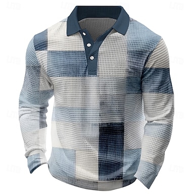 Per uomo Grafico Magliette Polo a Nido d'Ape Manica Lunga Magliette polo Camicie con Colletto Casual All'aperto Athleisure Abbigliamento casual alla moda Bottoni Blu Verde Grigio