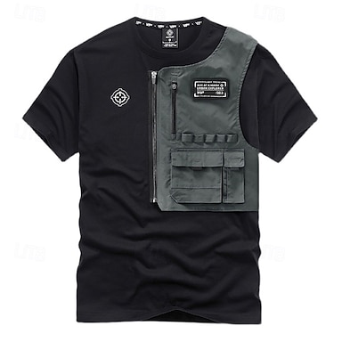 Per uomo Maglietta Camicia a Maniche Corte Manica Corta Girocollo Primavera & Estate Blocco di colori Moda Designer Essenziale Patchwork Cerniera Vacanza Streetwear Uscire Nero Maglietta Top per Uomo