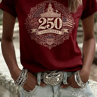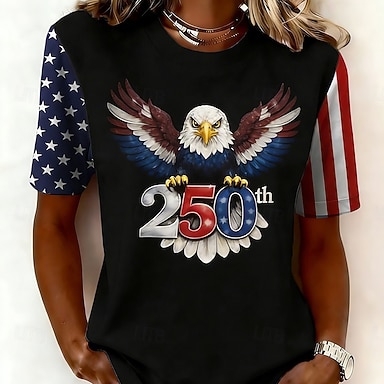 Giorno dell'Indipendenza Americana Per donna Maglietta Stampato Grafico Bandiera Elegante Classico Casual Manica Corta Girocollo Top lunghi Quotidiano Blu Nero Bianco Rosso Estate Primavera