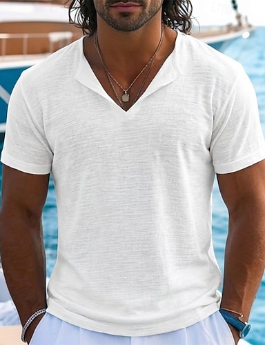 Per uomo Maglietta Maglietta in lino Maniche Corte Scollo a V Estate Semplice Moda Designer Essenziale Morbido Puro Casuale Vacanza Streetwear Blu Nero Bianco Maglietta Top per Uomo