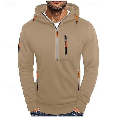Per uomo Felpa con cappuccio Felpa con cappuccio e zip corta Nero Bianco Verde militare Blu marino Cachi Con Cappuccio Semplice Tasca Mezza cerniera Sport & Outdoor Quotidiano Ferie Poliestere