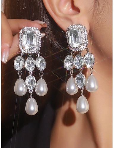 orecchini pendenti da donna con cristalli e perle - orecchini pendenti glamour con strass per feste, matrimoni o eventi serali