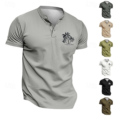 Per uomo Maglietta Maglia Henley Camicia a Maniche Corte Manica Corta Henley Estate Primavera Palma Moda Streetwear Casual Bottoni Stampato Quotidiano Vacanza Sport & Outdoor Nero Verde chiaro Bianco