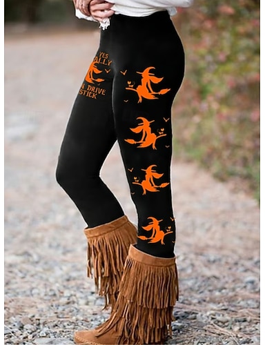 Leggings da Donna Vacanza Vintage Stile Etnico Lunghezza Caviglia Vita Alta Pantaloni Stampa Teschio 3D Asciugatura Rapida Traspirabilità Morbido Elasticizzato Formale Outdoor Vacanza Nero Bianco