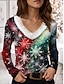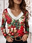 Natale Per donna Maglietta Grafico Babbo Natale Vintage Elegante Classico Manica Lunga Scollo a V Collo a V Top Regolari Quotidiano Stampato Blu Viola Verde Primavera Autunno Inverno
