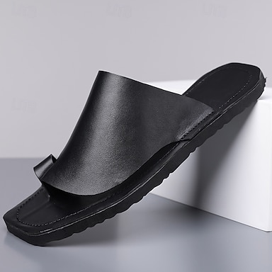 sandali slip-on minimalisti da uomo: tomaia in morbida similpelle, facili da indossare e togliere, stile estivo leggero, comode calzature casual per la spiaggia, il resort e l'uso quotidiano