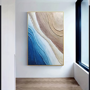 pittura a olio fatta a mano su tela decorazione artistica da parete fantasia astratta pittura blu dipinto minimalista originale per la decorazione domestica con cornice allungata / senza cornice