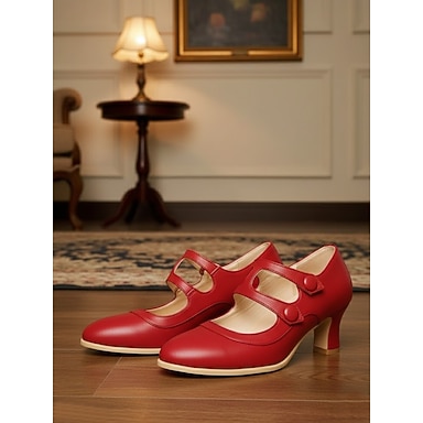 scarpe mary jane rosse vintage da donna anni '50 con doppio bottone, perfette per occasioni formali, feste e uso quotidiano