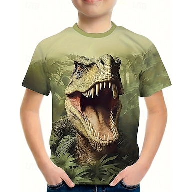 Ragazzi 3D Animale Dinosauro Maglietta Manica Corta Estate Primavera Moda Essenziale Bambini 4-12 Anni Girocollo All'aperto Casuale Quotidiano Vestibilità regolare