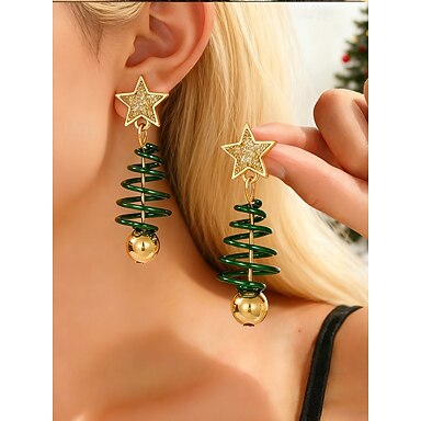 set di orecchini natalizi da donna, lega placcata in oro con motivi festivi, renne, stelle e alberi di Natale, gioielli natalizi per feste e celebrazioni invernali