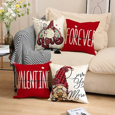 federa per cuscino a forma di cuore rosso per San Valentino, cuscino in lino con stampa di lettere, decorazione per divano dall'atmosfera romantica, cuscino decorativo per il soggiorno