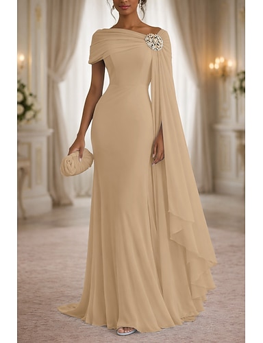 Tubino Colonna Lunghezza al pavimento Abito da invitata a nozze Abito Formale Abito da sera Abito da cerimonia per signora Senza Maniche Manica 3/4 Monospalla Elegante Semplice Formale Crepe