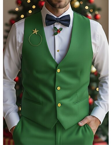 Uomo Abiti da festa Casuale Natale Giallo Rosso Inverno Tuta Bavero classico Natale Festa Tinta unita Vestibilità aderente 2 pezzi Monopetto Due Bottoni