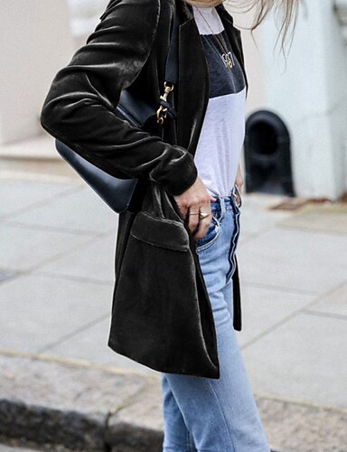 Per donna Blazer Blazer di velluto Confortevole Tasca Moda Semplice Feste Festa / Sera Regolare Collo ripiegato Vestibilità regolare Manica Lunga Capispalla Blu Nero Vino Autunno Inverno
