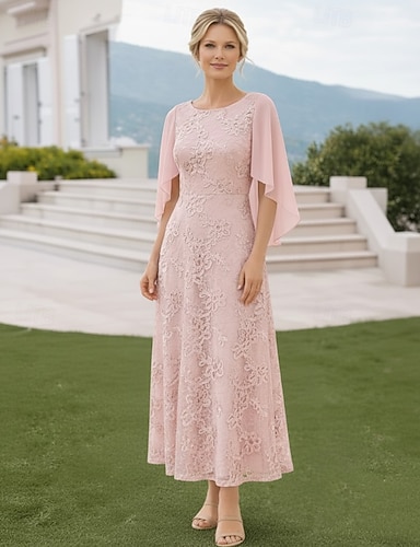 Linea ad A Abito Lunghezza alla caviglia Abito da Cocktail Abito da invitata a nozze Abito da cerimonia per signora Manica Corta Scollo a V Scollo a Barca Elegante Casual Formale con Ricamo