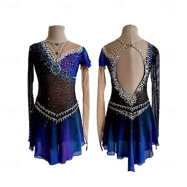 Abito da pattinaggio artistico Per donna Ragazze Pattinaggio sul ghiaccio Vestito Nero / blu Schiena aperta Rete Alta elasticità Allenamento Competizione Vestiti da pattinaggio sul ghiaccio Classico